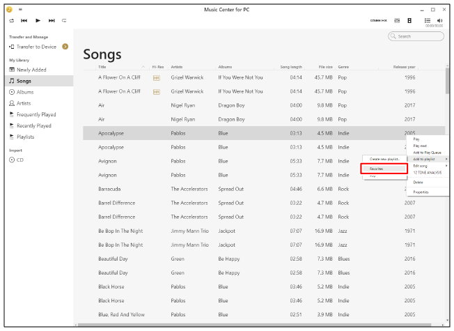 Klik op [Aan afspeellijst toevoegen], en selecteer vervolgens de naam van de afspeellijst waaraan u het nummer wilt toevoegen.