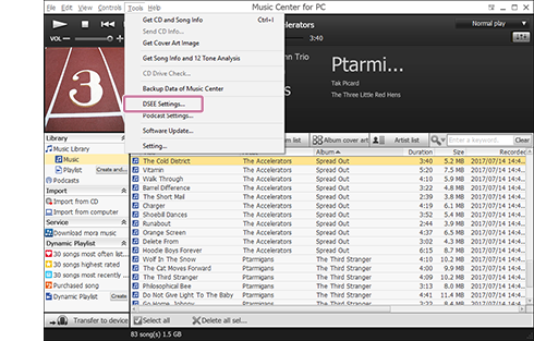 De DSEE (Digital Sound Enhancement Engine)-functie gebruiken (Music Center for PC Ver.1.0)