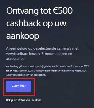 - Klik op de campagnewebsite op de blauwe claimknop (bijv. Claim cashback).