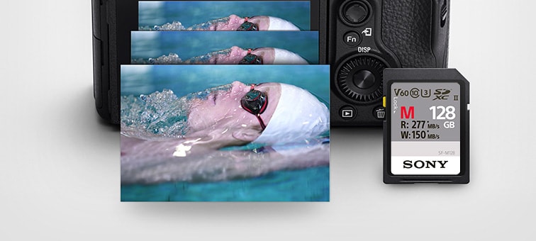 — zorgt ervoor dat de geheugenbuffer snel wordt gewist, voor continue burstopnamen en het in hoge resolutie vastleggen van beelden. De UHS-snelheidsklasse 3 en de nieuwe videosnelheidsklasse V60 zorgt voor een snelle schrijfsnelheid voor betrouwbare 4K-video's met een hoge bitsnelheid — ideaal voor videomakers